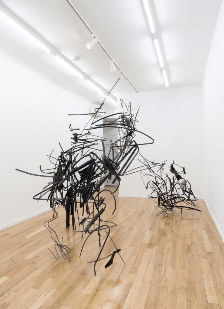 Levels, (steel and rubber crawler, clear), steel, urethane rubber, 2015.