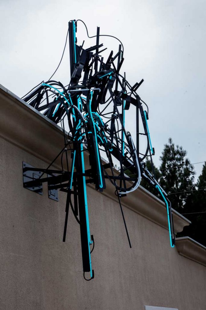 Hors d’oeuvres, Steel, neon, transformers, GTO cable, electric cable, 2 x 5 x 4.5 feet, 2015