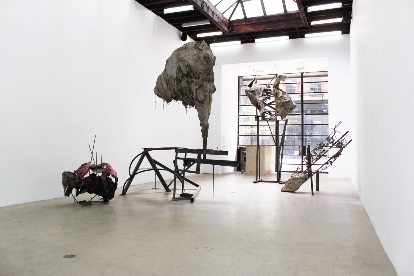 Sweats, Concrete, steel, burlap, faux fur, sweatpants, 2011.